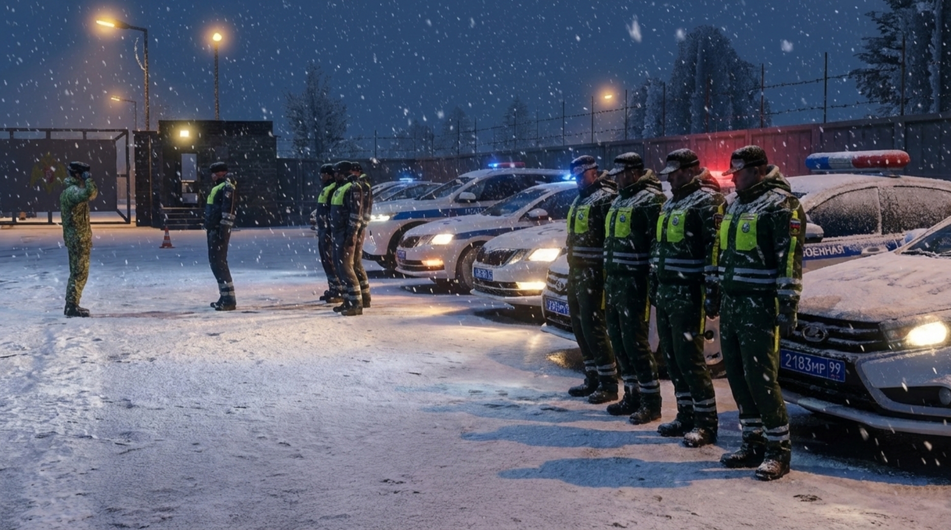 Перед началом соревнований сотрудники Госавтоинспекции и военнослужащие провели совместные тренировки, направленные на повышение уровня взаимодействия между подразделениями и отработку тактических действий на дороге.